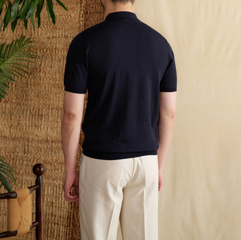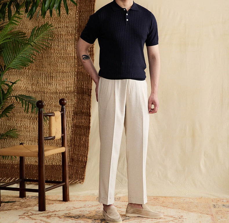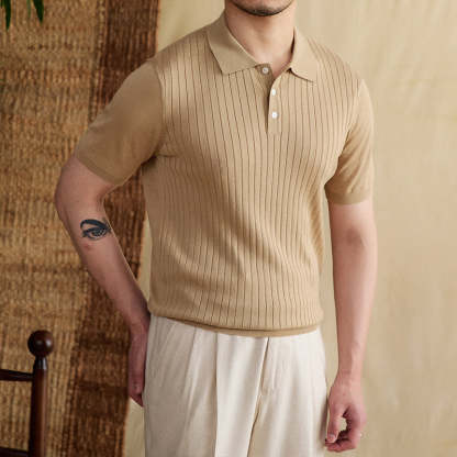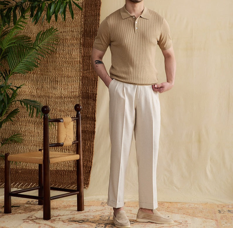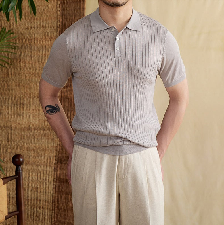 Athens Ribbed Pleated Knit Polo Shirt