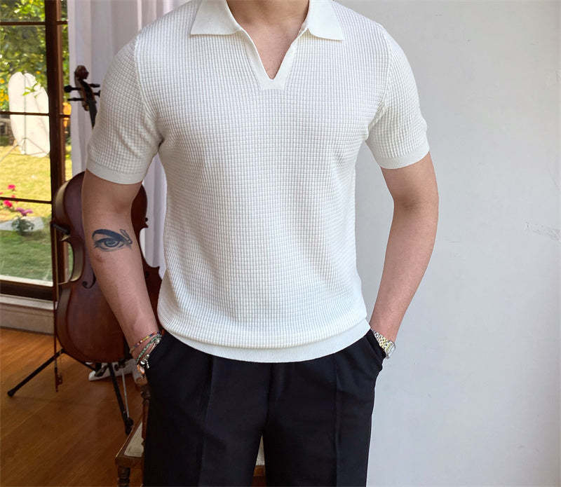 Buttonless Micro-Textured Knitted Polo