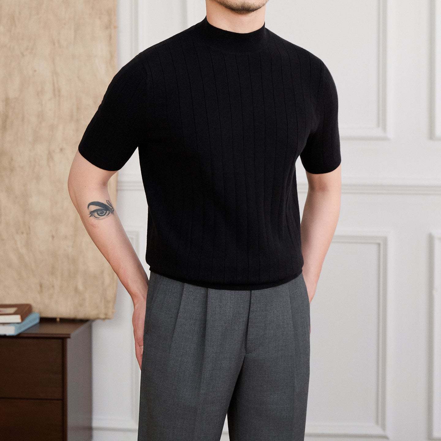 Tokyo Mockneck Pleated Knit Wool Blend T-Shirt