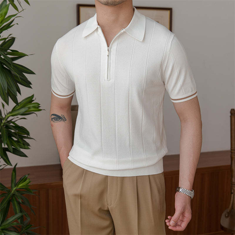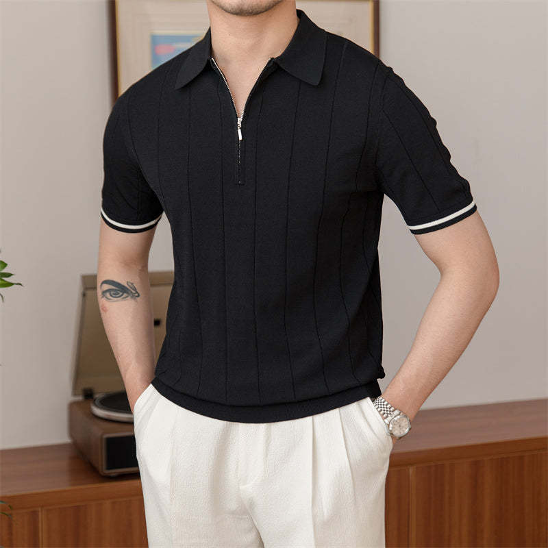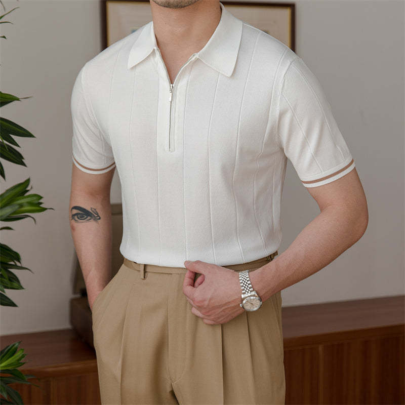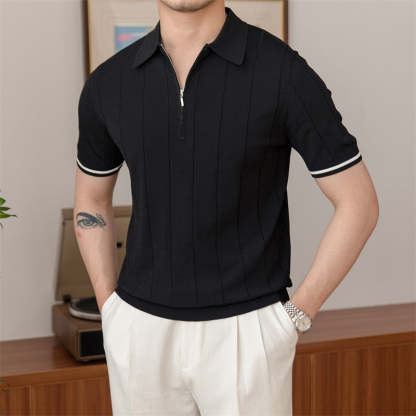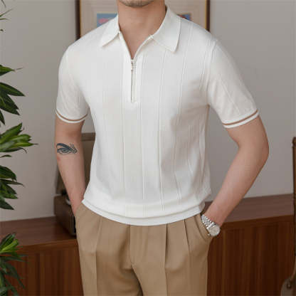 Zipped Pleated Knitted Polo